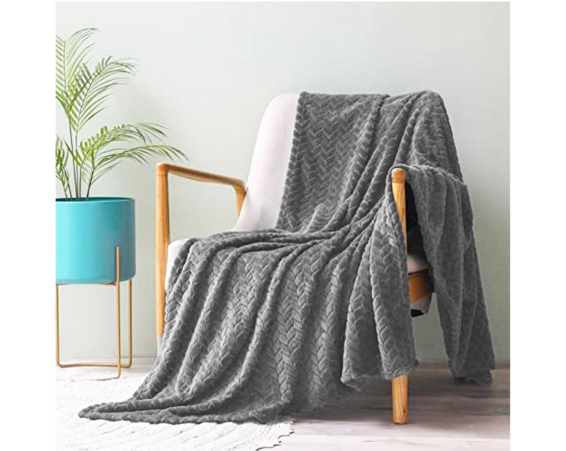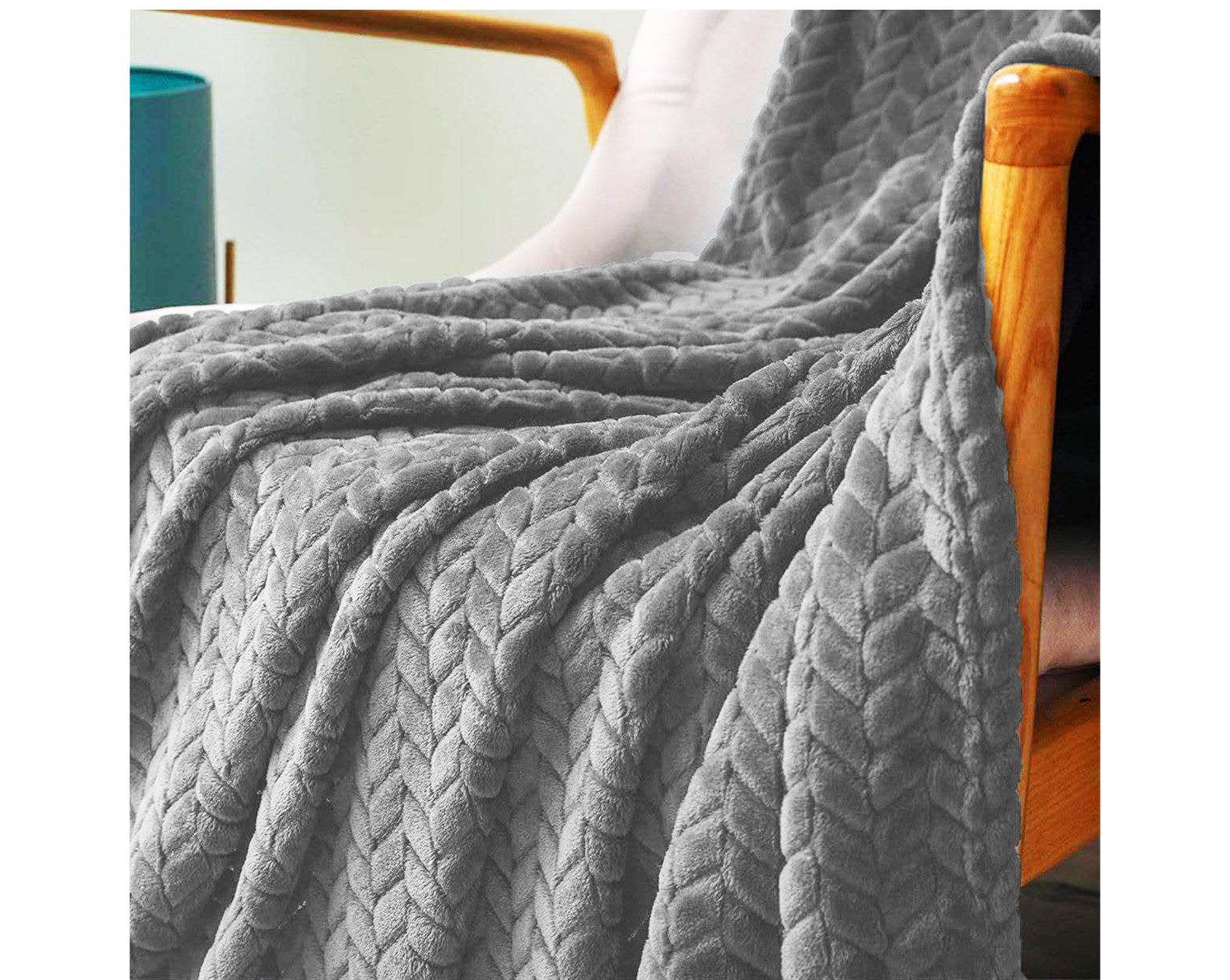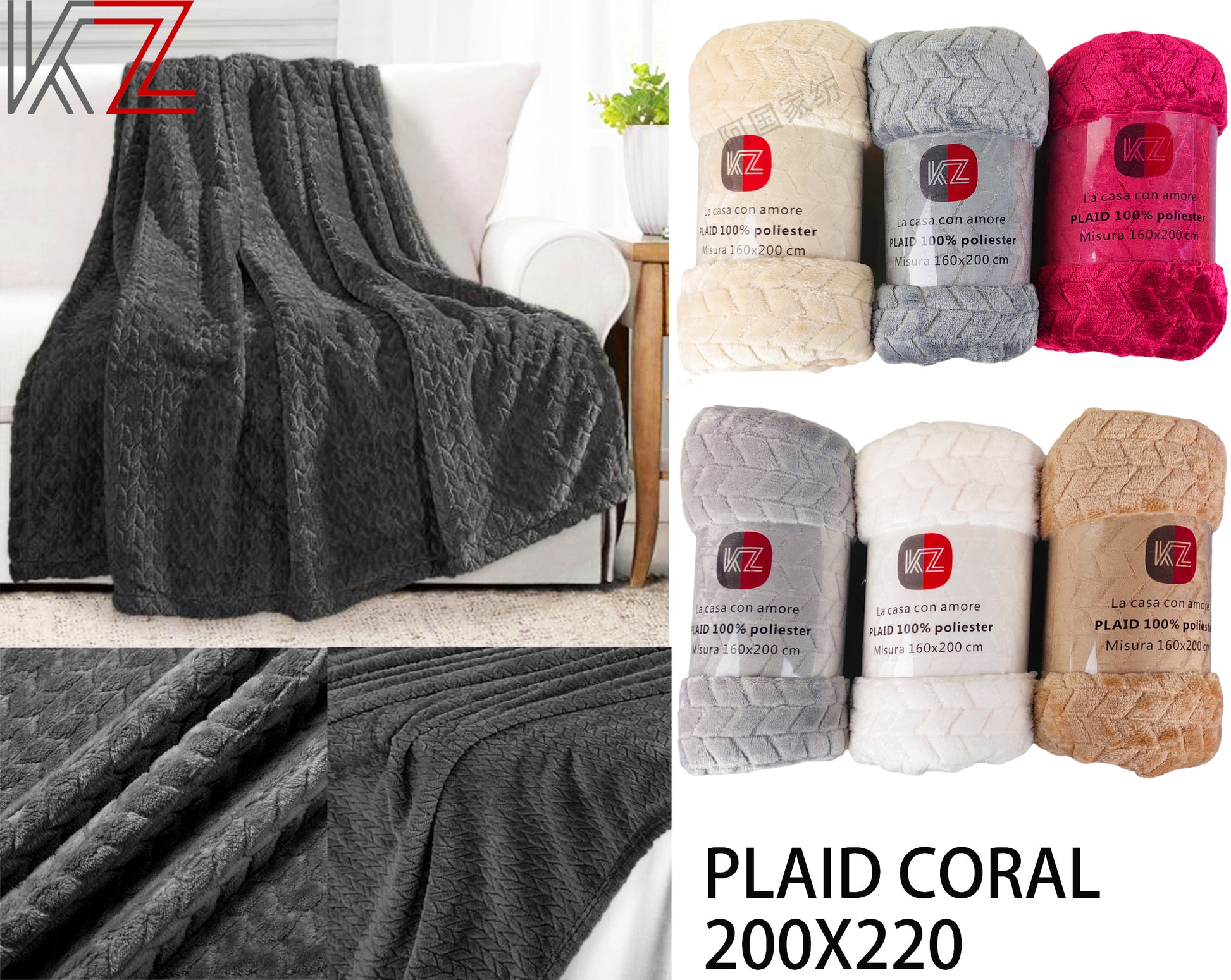PLAID IN MORBIDA E CALDA FLANELLA CORAL PER DIVANO ,LETTO CON MOTIVO A FOGLIE 200X220