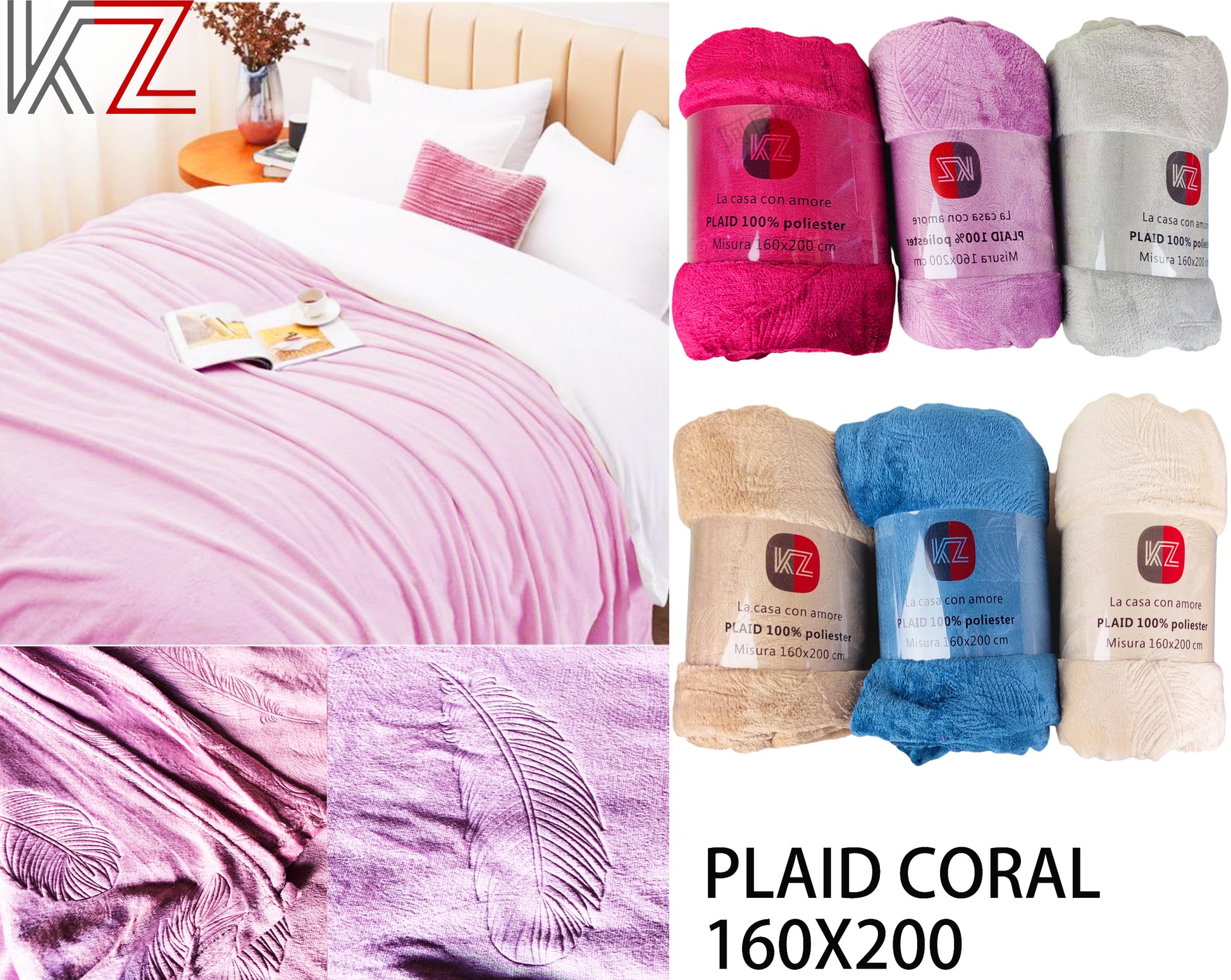 PLAID IN MORBIDA E CALDA FLANELLA CORAL PER DIVANO ,LETTO CON MOTIVO DISEGNO A PIUME 160X200
